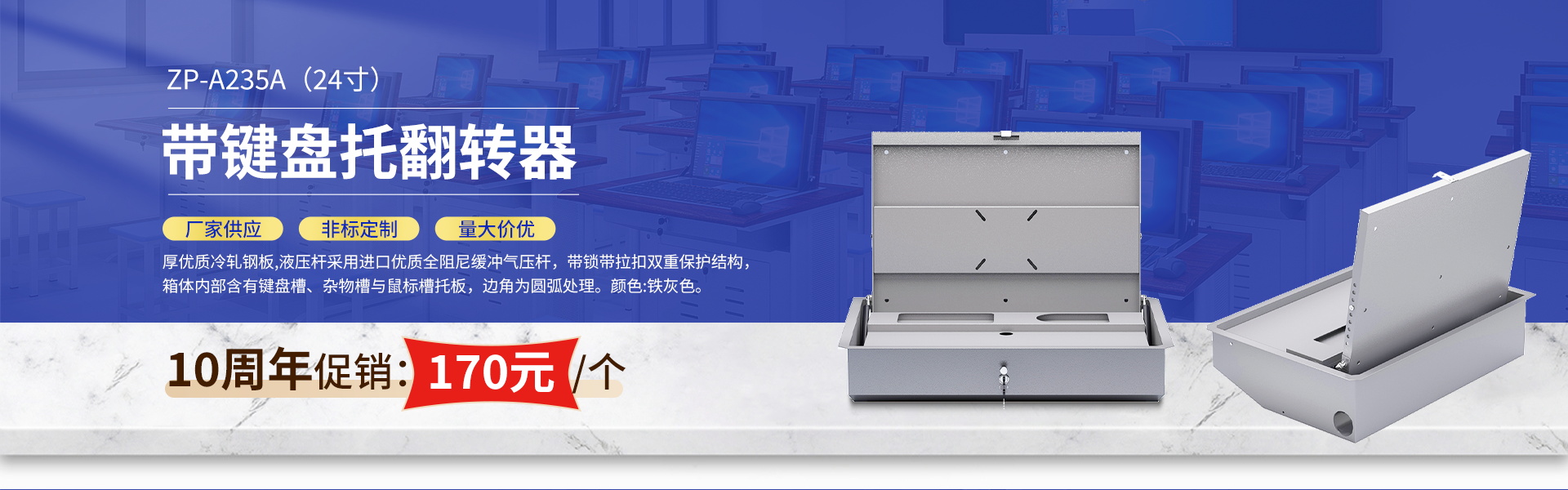 廣東正鵬實(shí)業(yè)有限公司前身為廣州正鵬教學(xué)設(shè)備有限公司;成立于2015年;2023年更名為正鵬實(shí)業(yè);公司始終專(zhuān)注于生產(chǎn)學(xué)生電腦桌、液晶顯示器翻轉(zhuǎn)器、多媒體講臺(tái)、電腦室桌椅、實(shí)驗(yàn)室桌椅、控制臺(tái)、操作臺(tái)等教學(xué)家具&設(shè)備的獨(dú)資企業(yè)。公司引進(jìn)了當(dāng)下最先進(jìn)的板色家具生產(chǎn)線(xiàn)和數(shù)控靜電噴塑、鈑金焊接等現(xiàn)代化的生產(chǎn)工藝。我們的產(chǎn)品具有環(huán)保時(shí)尚、堅(jiān)固耐用、美觀(guān)大方等特點(diǎn),適用于各大院校、中小學(xué)校、體育館、劇場(chǎng)、餐廳、會(huì)議室等場(chǎng)所。正鵬實(shí)業(yè)在行內(nèi)深耕多年,其產(chǎn)品種類(lèi)繁多,款式新穎,造型美觀(guān),材料優(yōu)質(zhì),工藝考究,質(zhì)量穩(wěn)定,深得眾多客戶(hù)的支持與厚愛(ài)。我們善于制作特色產(chǎn)品,只需說(shuō)明要求,給出規(guī)格參數(shù),或提供1:1的圖紙、樣板,我們即可做出令您滿(mǎn)意的產(chǎn)品。謙迎廣大客商前來(lái)垂詢(xún)洽談!經(jīng)過(guò)多年的發(fā)展,我們已經(jīng)樹(shù)立了良好的企業(yè)形象,在同行和客戶(hù)中贏(yíng)得了良好的口碑。公司堅(jiān)持秉承“以質(zhì)量求生存,科技促發(fā)展,信譽(yù)立形象”的宗旨,堅(jiān)決落實(shí)“持續(xù)創(chuàng)新,互利共贏(yíng)”的經(jīng)營(yíng)理念。不懈的努力和追求,成就了我們?cè)诮虒W(xué)家具
